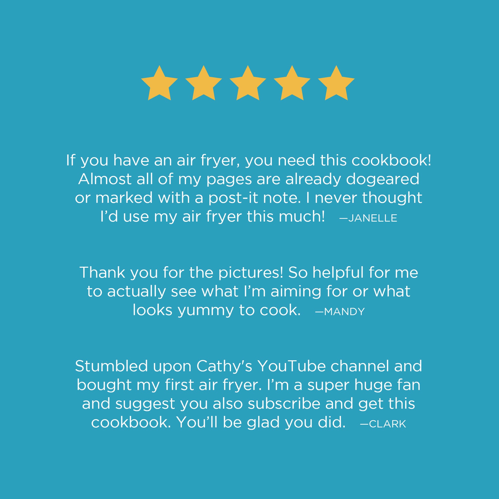 Written by Cathy Yoder, "The REAL Air Fryer Queen" and tester of hundreds of air fryer recipes, Yummy Air Fryer Recipes is the best quick and easy air fryer recipe cookbook available- complete with real ingredients and recipes, made real fast!