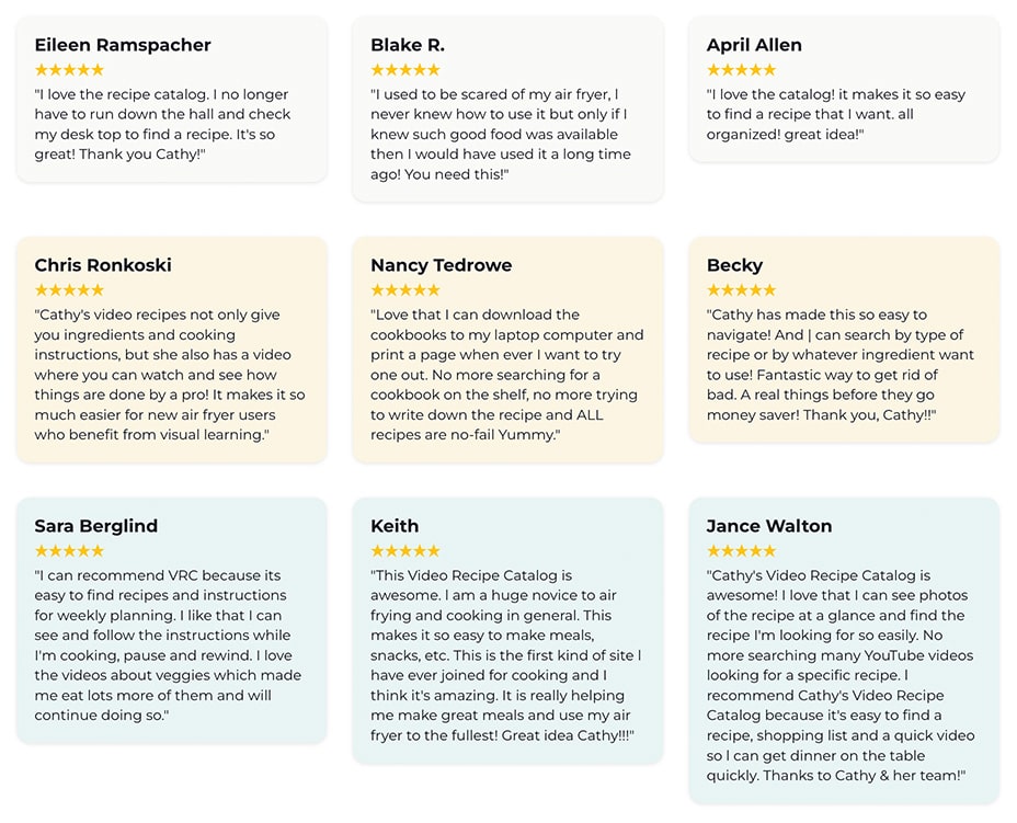For a limited time only, you can try the Video Recipe Catalog risk-free with our FREE 30 day trial and see what it’s all about (cancel anytime).