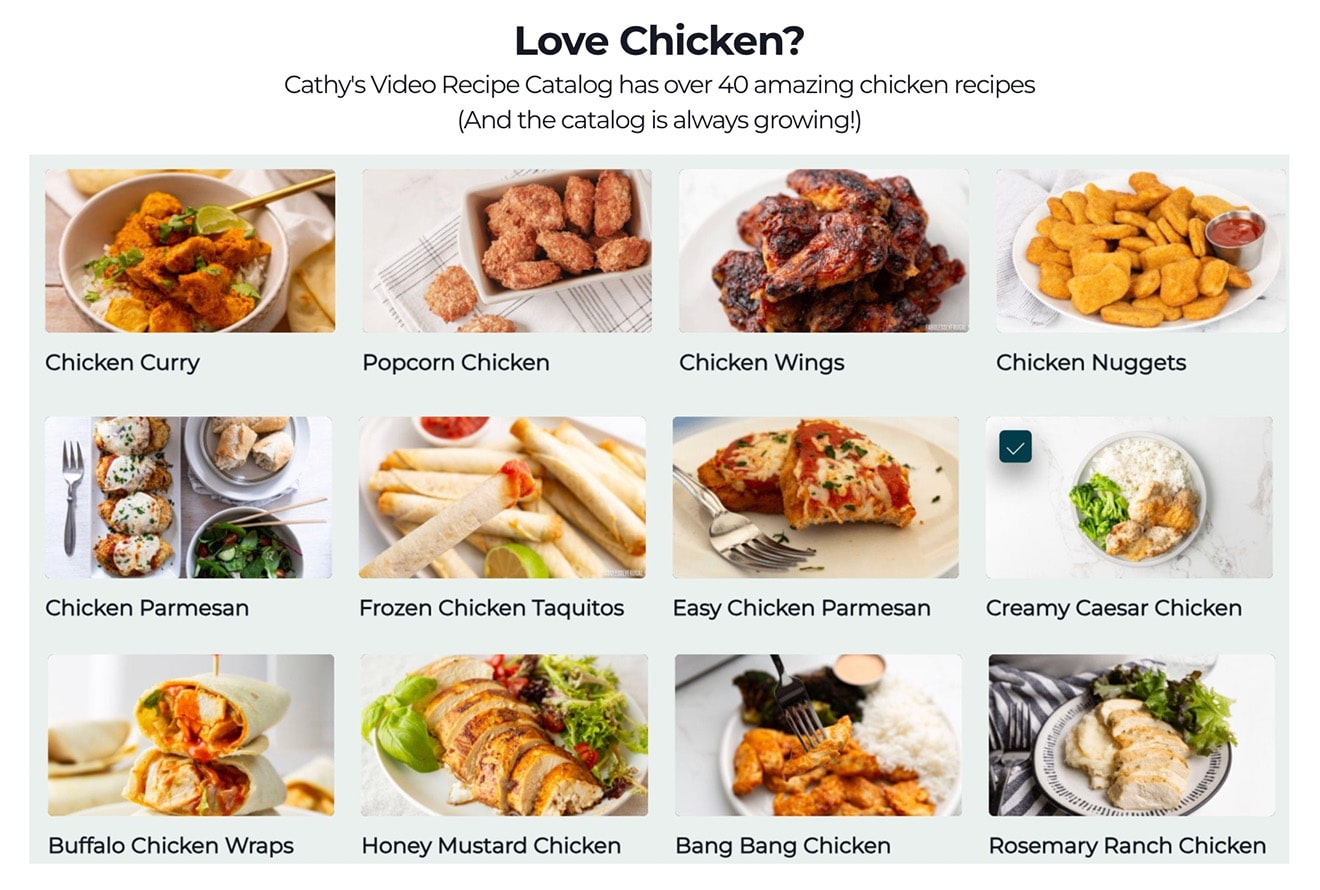 Whether you’re looking for a fast weeknight dinner or something new to impress your family, Cathy’s step-by-step videos ensure you get perfect results every time.